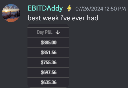The last thing I’ll add: EBITDAddy was incredibly consistent. The big payouts didn’t come on the first day, or even the first month. But he showed up every day and put the work in. See for yourself: