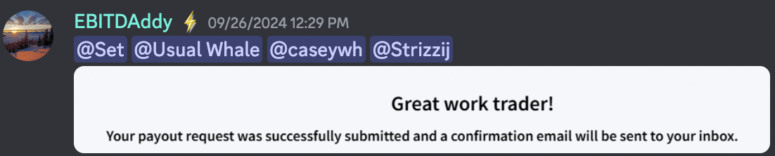 Just understanding that that's part of the game, and you just got to be the best version of yourself when you're trading every single day, was huge for me. That’s why now that I feel like I'm a veteran in this community, I try to give that back as well to the some of the new people. I'm always saying, like, feel free to DM me. And people have, and I've been able to provide some feedback to other people that they might need in those moments, just like how other people helped me when I was in need. And so that's been a really valuable aspect to my trading career.