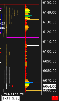 Once we lost 6106 (my pivot), that was my cue to switch bias to short. You can see VWAP right there (the white line), showing you that the pivot was indeed the middle ground of the day.