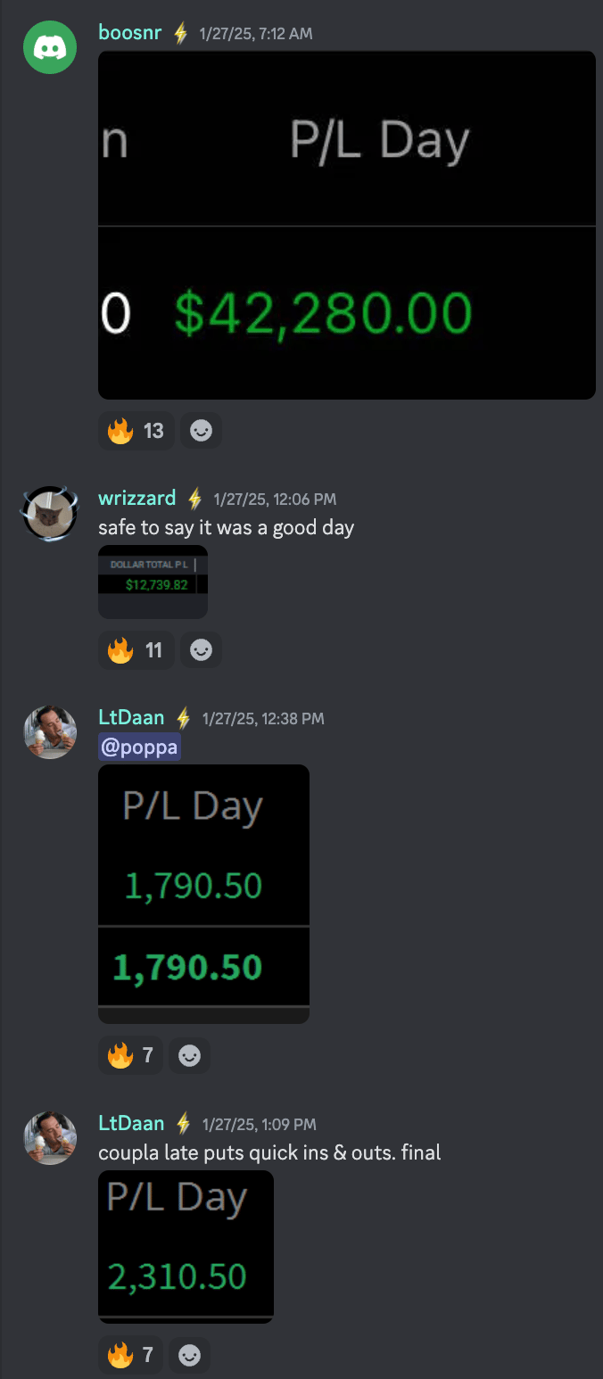 Our quant wizard “Usual Whale” spent the weekend dissecting DeepSeek and concluded the entire fiasco was “overblown.” So, when RTH opened and volatility died, he went long 21230 and locked in profits around 21400-420.