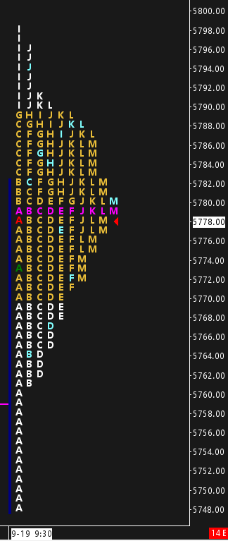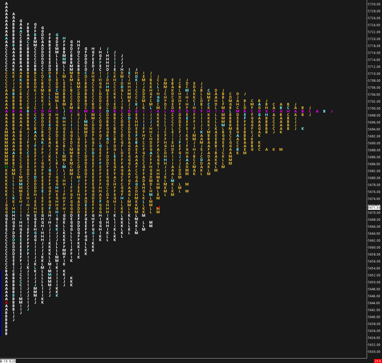 Just like the weather, stock prices behave like a random variable. Sure, external factors cause crazy days, but over time, prices usually settle into a distribution. And when I trade intraday, I’m basically building my own version of that weather chart, but for price action. I break the day into 30-minute chunks, and every time a price trades, I slap a letter on it: A for the first half hour, B for the second, and so on.