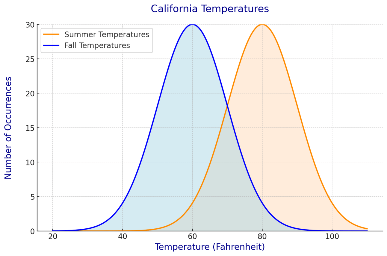 Fall’s creeping in, my friend. And temperature distribution is shifting. Soon, it’ll find a new center and new range that’s offset to the left.