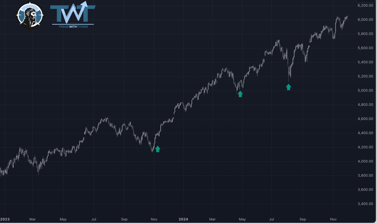 In October 2023, sentiment was still scarred from the bear market. In August, the VIX spike had people running for cover. What they missed was the market doing exactly what it always does—revisiting pivotal areas in its structure.
