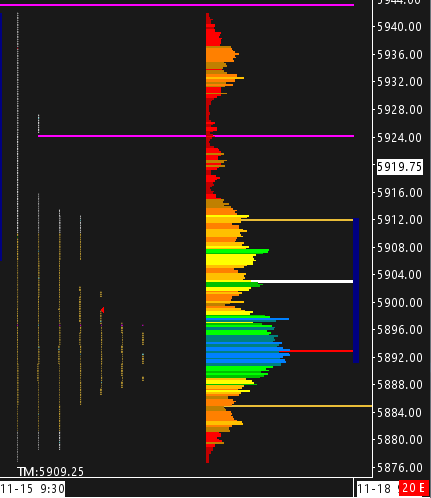 Look at this sexy profile. If you missed my earlier newsletter about these patterns, here's the TLDR: Friday formed a "b" profile cleaner than a surgeon's hands. That means patient buyers were loading up like it's Black Friday. The close above the point of control? That's the first signs of bulls gearing up for the big show. But the real money shot? The bottom of that "b" right at 5876.