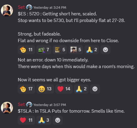 In case you've been sleeping, Adam Set has been calling the intraday moves in the Discord like a sniper.